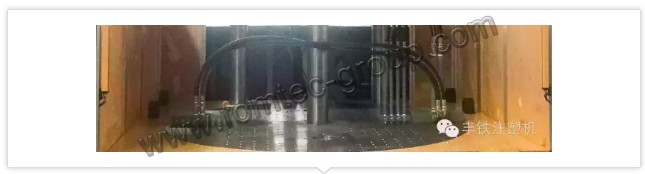 A自主設計三缸直鎖方式鎖模轉盤機,模缸置于上模板上側;